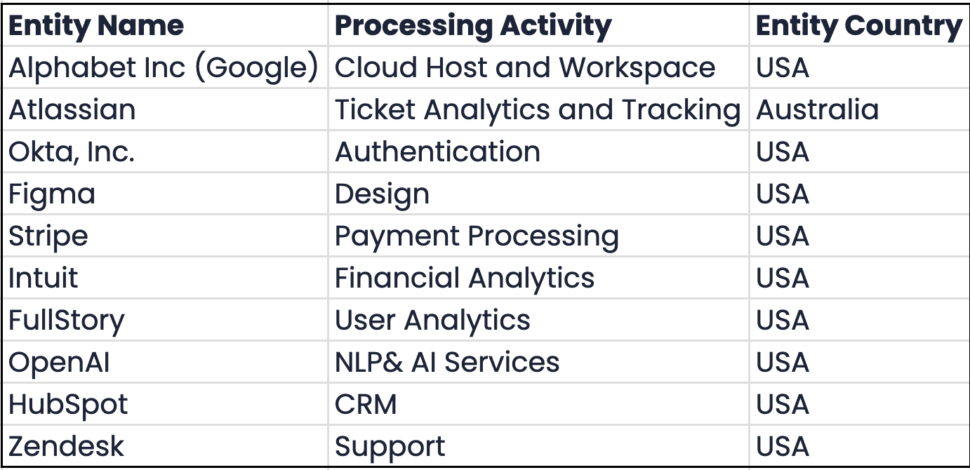 Stylo, Inc., a Delaware corporation ("Stylo") uses service providers (each, a "Processor") that may process personal data about our customer’s users to support the delivery of our services.